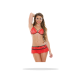 Conjunto 4 Piezas Brillante Lencería seductora con top, tanga, liguero y medias